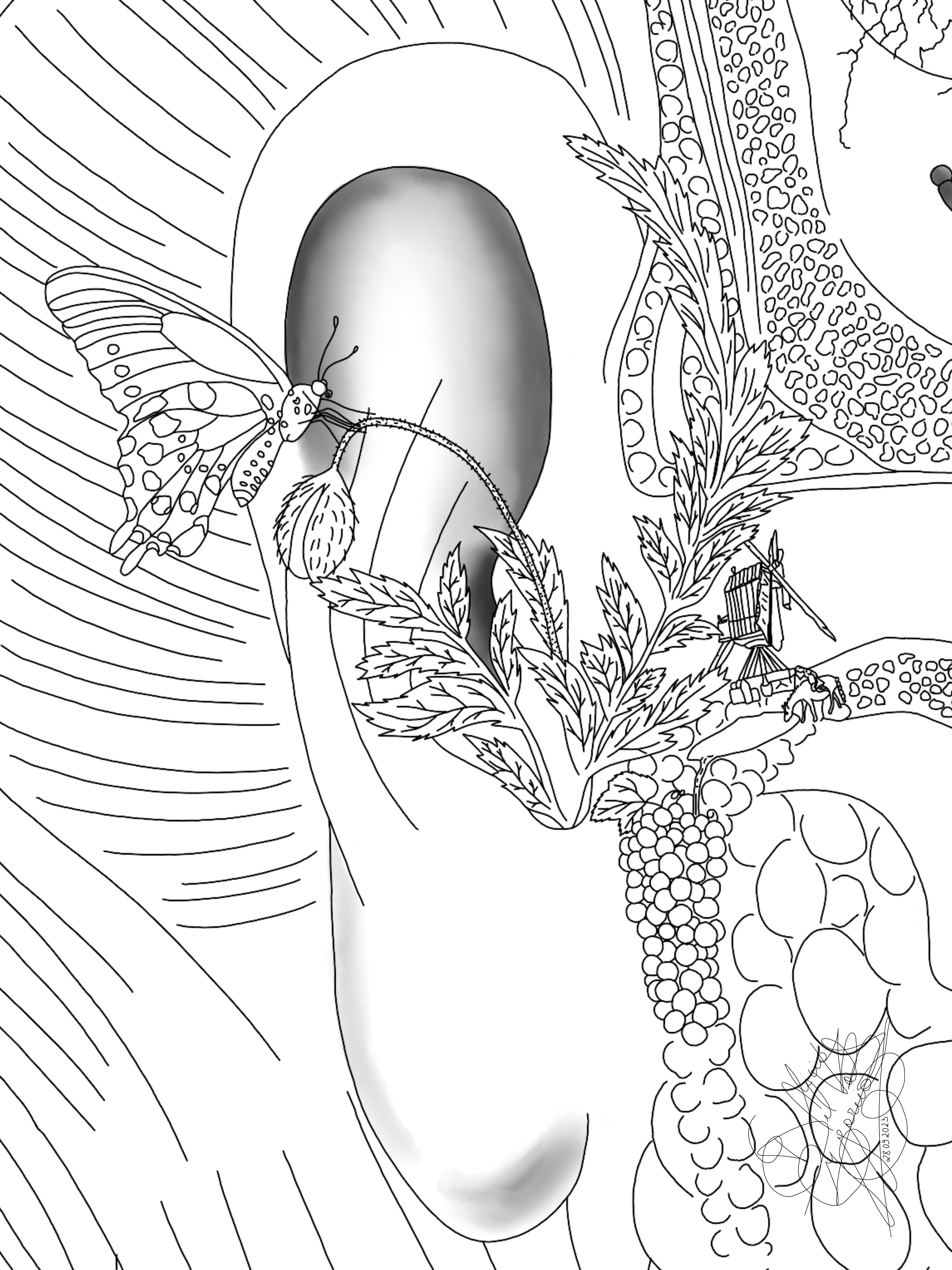 Nouvelle version de mon 1er dessin sur la CONSCIENCE pour qu’on voit bien que je parle de mon oreille interne en entier…, de mon oreille car je suis représenté à la place du tympan et les détails philosophiques font partie de mon passé, de mon présent, de mon futur et de mes pensées… …….○!